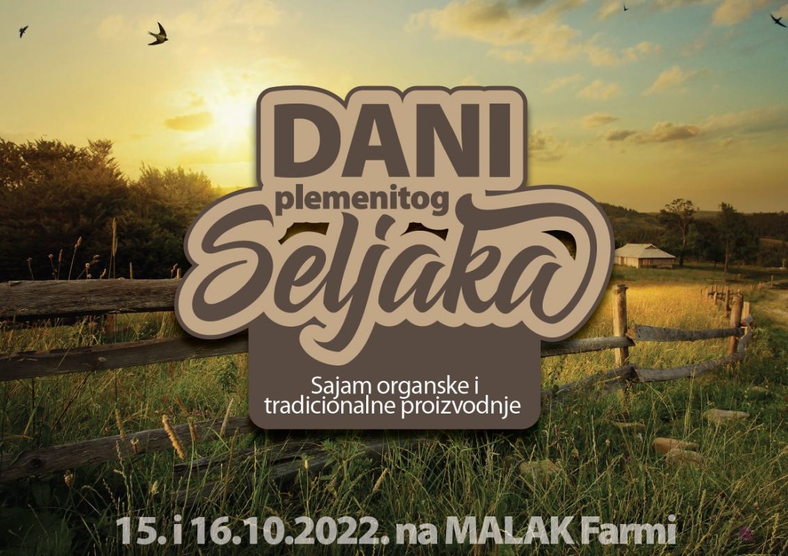Prvi sajam organske i tradicionalne proizvodnje “Dani plemenitog Seljaka“ će se održati 15. i 16. oktobra 2022. godine na Malak Farmi.